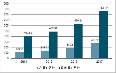 2014-2017年中国DTRO膜市场产需量对比