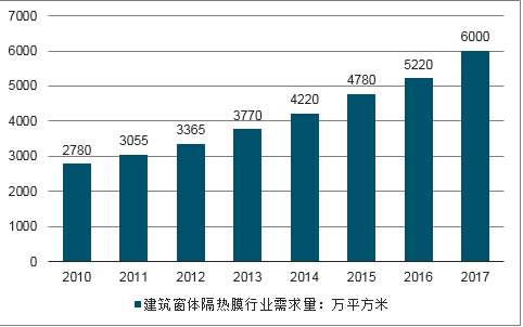 2010-2017年中国建筑窗体隔热膜行业需求量情况
