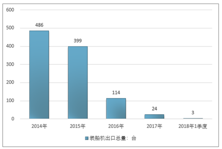 2016年我国装船机出口总量114台,2017年出口总量24台;2019年1季度出口总量3台。