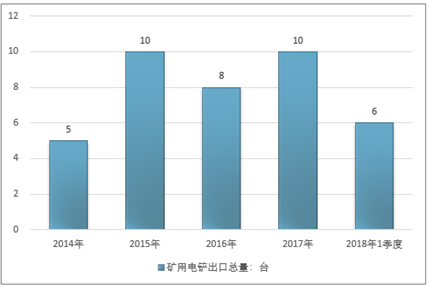 2016年我国矿用电铲出口总量8台 ,2017年出口总量10台 ;2019年1季度出口总量6台 。