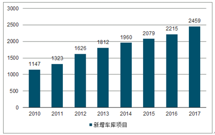 2010-2017年中国机械式停车新增车库项目数量情况(个)