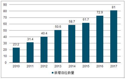 2010-2017年中国机械式停车新增泊位数量变化趋势图(万个)