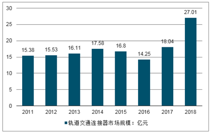 2011-2019年我国轨道交通连接器市场规模走势图