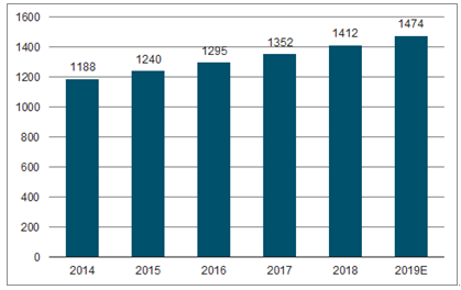 图表3:2017-2019年全球民用离心泵行业市场规模