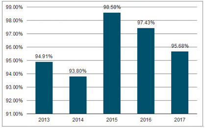 2013-2017年中国民用离心泵产销率