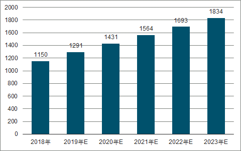 2018-2023年辐射加工产业市场规模预测(亿元)