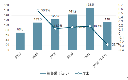 图表 2017-2019年我国空气净化器市场规模及增长率变化图