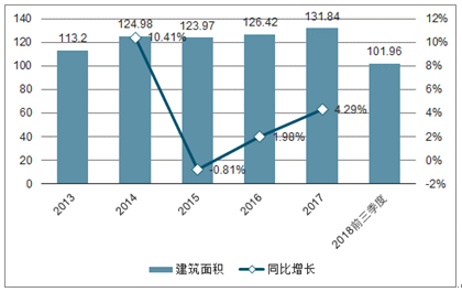 2013-2019年中国建筑业企业房屋新建面积
