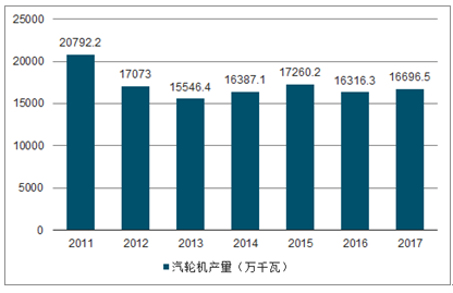 2011-2017年中国工业汽轮机产量情况
