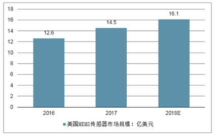 2017-2019年美国MEMS传感器行业市场规模(亿美元)