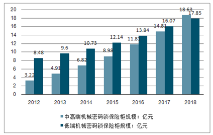2012-2019年中国机械密码锁保险柜行业市场细分规模情况