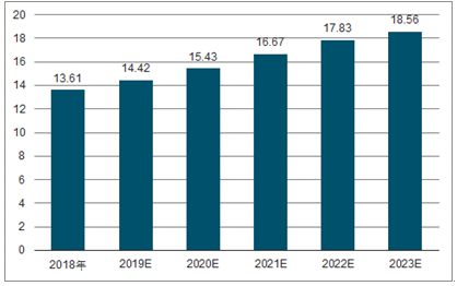 2018-2023年中国切片机行业销售规模预测(亿元)