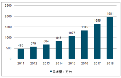 2011-2018条码识读设备需求量(万台)