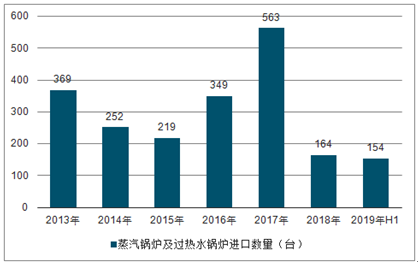 2013-2019H1中国蒸汽锅炉及过热水锅炉进口数量趋势图