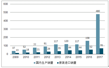 2009-2017年国内及进口壁挂炉行业整机销售量