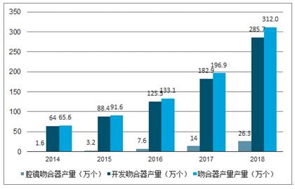 2014-2018年中国吻合器行业产量情况