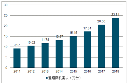 2011-2018年我国通道闸机需求总量统计图