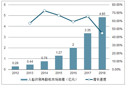 2012-2018年我国人脸识别考勤机市场规模及增长速度