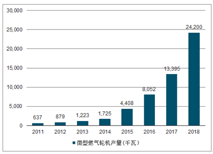 2011-2018年中国微型燃气轮机行业产量情况
