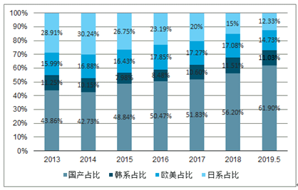 2013-2019.5各国品牌挖机份额占比