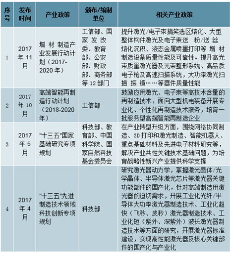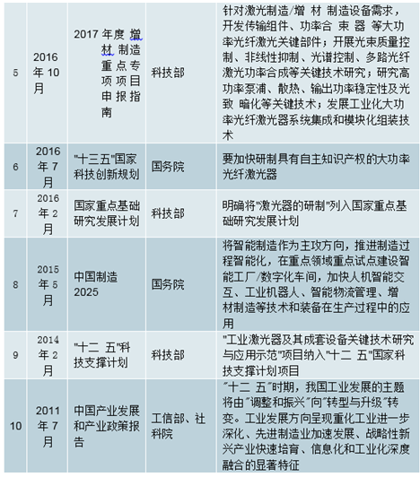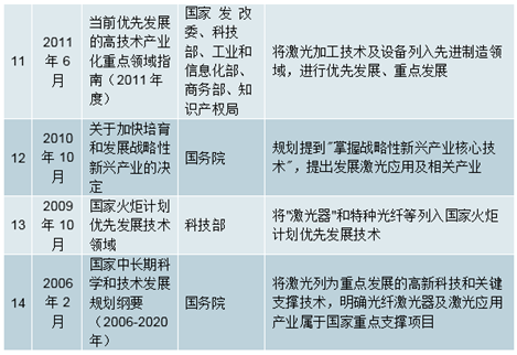 国家出台一系列支持激光器发展的产业政策