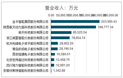 2019年中国智能燃气表代表企业销售收入