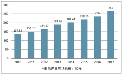 2010-2017年中国激光产业市场规模情况
