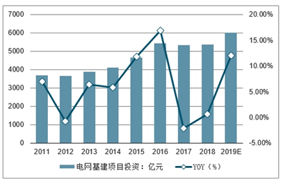 电网基建项目投资及增速预测(单位:亿元)