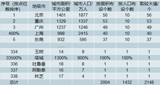 据《环境空气质量监测点位布设技术规范》测算,省控、市控点共需 2148 个监测点位。 以 2016 年中国城市统计年鉴的城市建成区面积以及城市人口为依据,进行监测点位估 算。若单纯考虑城市面积,则 338 个地级市需要 2004 个监测点位;单纯考虑城市人口, 需要 1432 个监测点位,若按照规范要求对每个城市取两种测算方法的较大值,则预计 城市空气监测点位共计 2148 个。