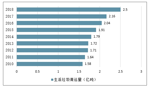 2010-2018年中国生活垃圾清运量走势