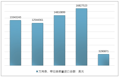 图表:2013-2019年中国万用表行业进口量及进口额