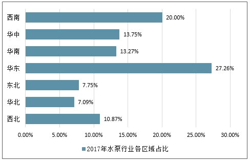 2017年水泵行业各区域占比