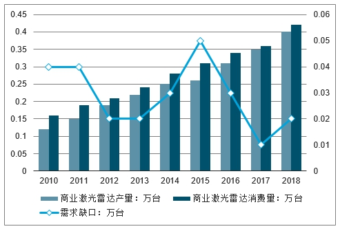 2010-2018年中国商业激光雷达产销情况