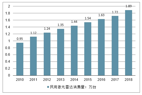 2010-2018年中国民用激光雷达销量情况
