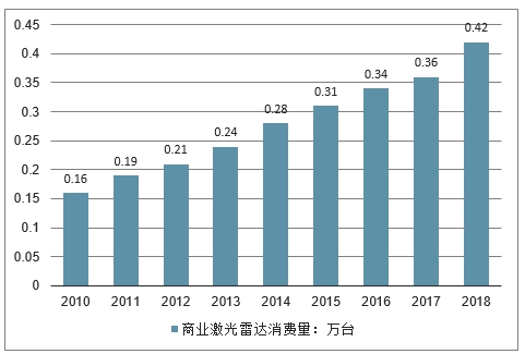 2010-2018年中国商业激光雷达销量情况