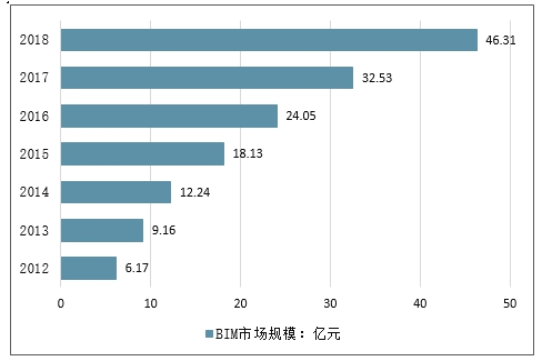 2012-2018年我国BIM市场规模走势