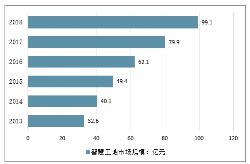 2019年智慧工地市场规模为99.1亿元,较2017年的79.9亿元增长24.03%。