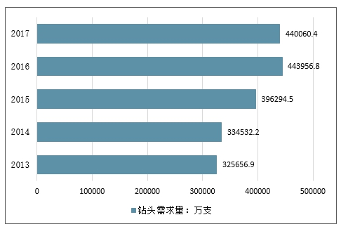 2016年我国钻头产量为745955.0万支,2017年我国钻头产量为711135.1万。