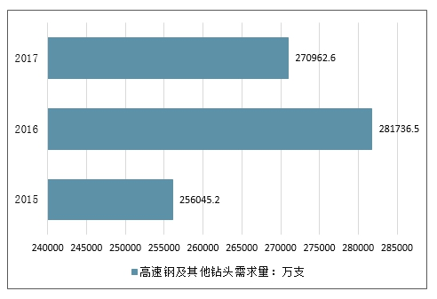 2015-2017年我国高速钢及其他钻头需求量统计