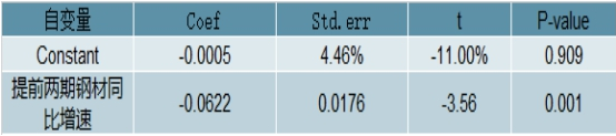 叉车原材料成本结构回归分析结果(滞后两期)