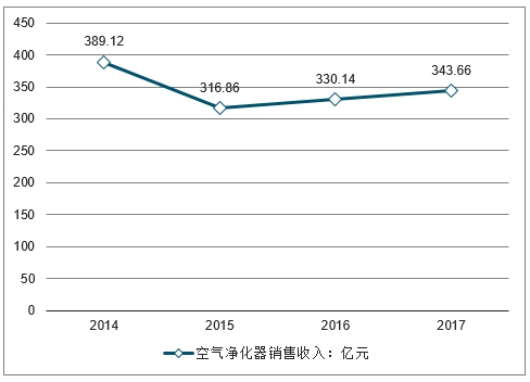 2014-2017年中国空气净化器销售收入及同比增长走势