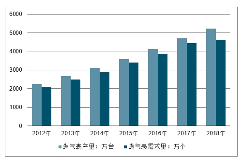 2012-2018年中国燃气表行业产销情况