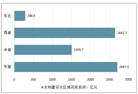 2017年中国水利建设分区域完成投资情况