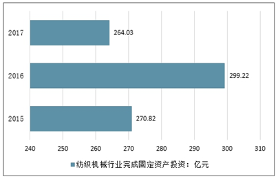 2016年,纺机行业固定资产投资额为299.22亿元,同比增长10.47%,比上 年提升10.43个百分点;2017年,纺织机械行业累计完成固定资产投资264.03亿 元,同比下降11.76%。在大行业整体下滑,行业分化的大背景下,预计2019年纺织机械行业固定资产投资也会有较大幅度的下降。