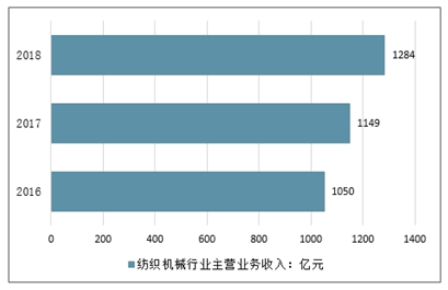 2016-2019年中国纺织机械行业主营业务收入情况