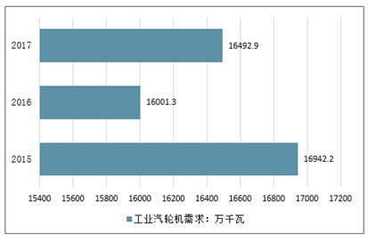 2017年我国工业汽轮机市场需求约16492.9万千瓦,同比2016年增长了3.07%。