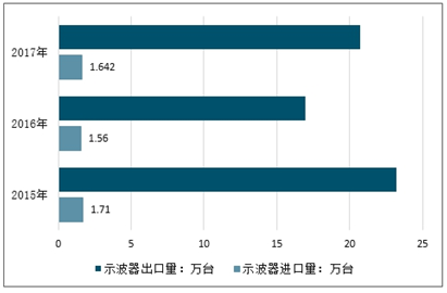 2015-2017年中国示波器行业进出口情况