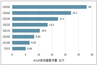 20192025年SAW滤波器需求量走势