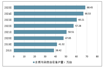 中国未来的水处理设备市场前景十分广阔。预计到2025年,中国水质污染防治设备产量将达到68.45万台。