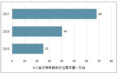 2017年我国人脸识别考勤机行业需求量约68万台,其中。高端人脸识别考勤机行业需求量约8万台,中低端需求量约60万台。